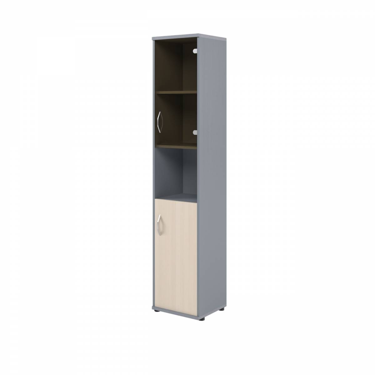 • Шкаф комбинированный малыми стеклянными и глухими дверьми СТ-1.4 Клен/Металлик 770*365*1975
